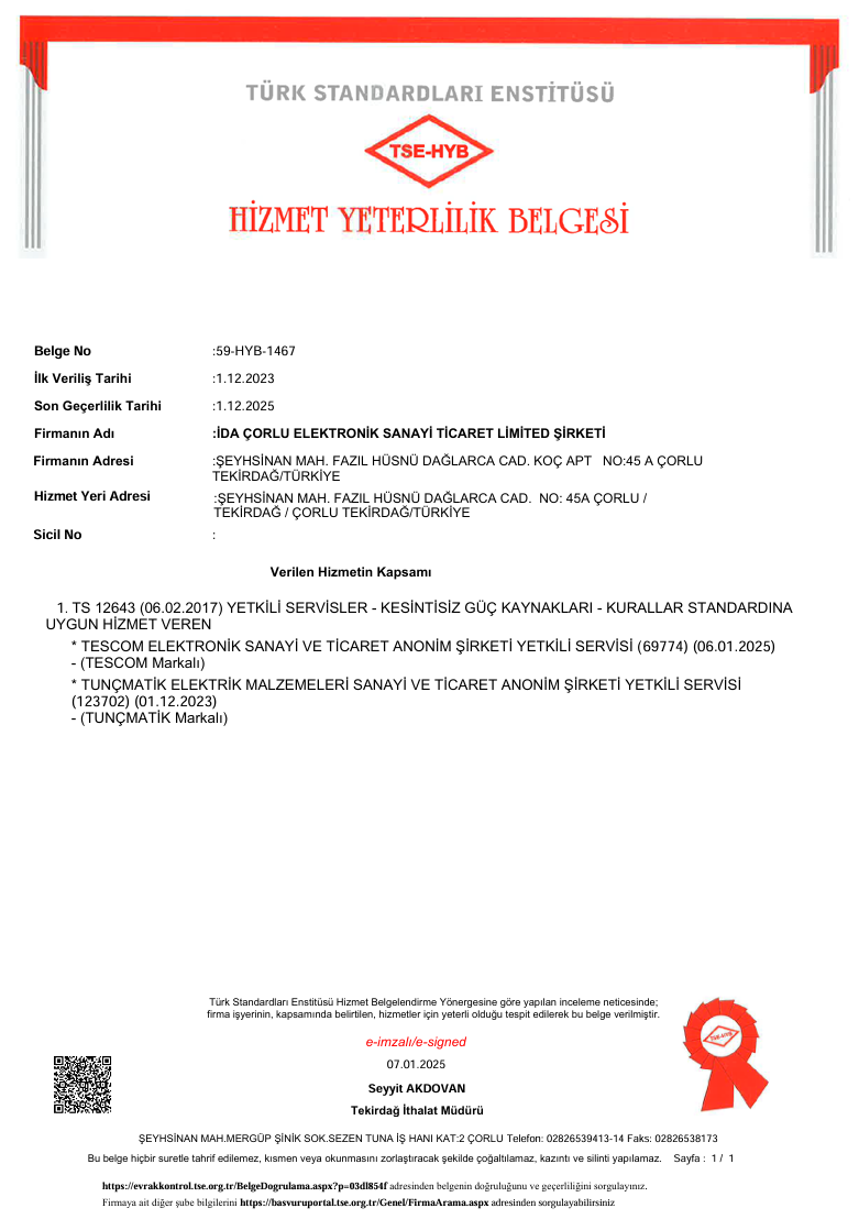 TSE Hizmet Yeterlilik Belgesi