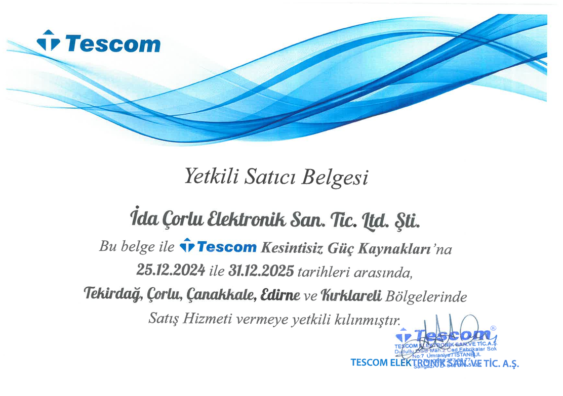 Tescom Yetkili Satıcı Belgesi