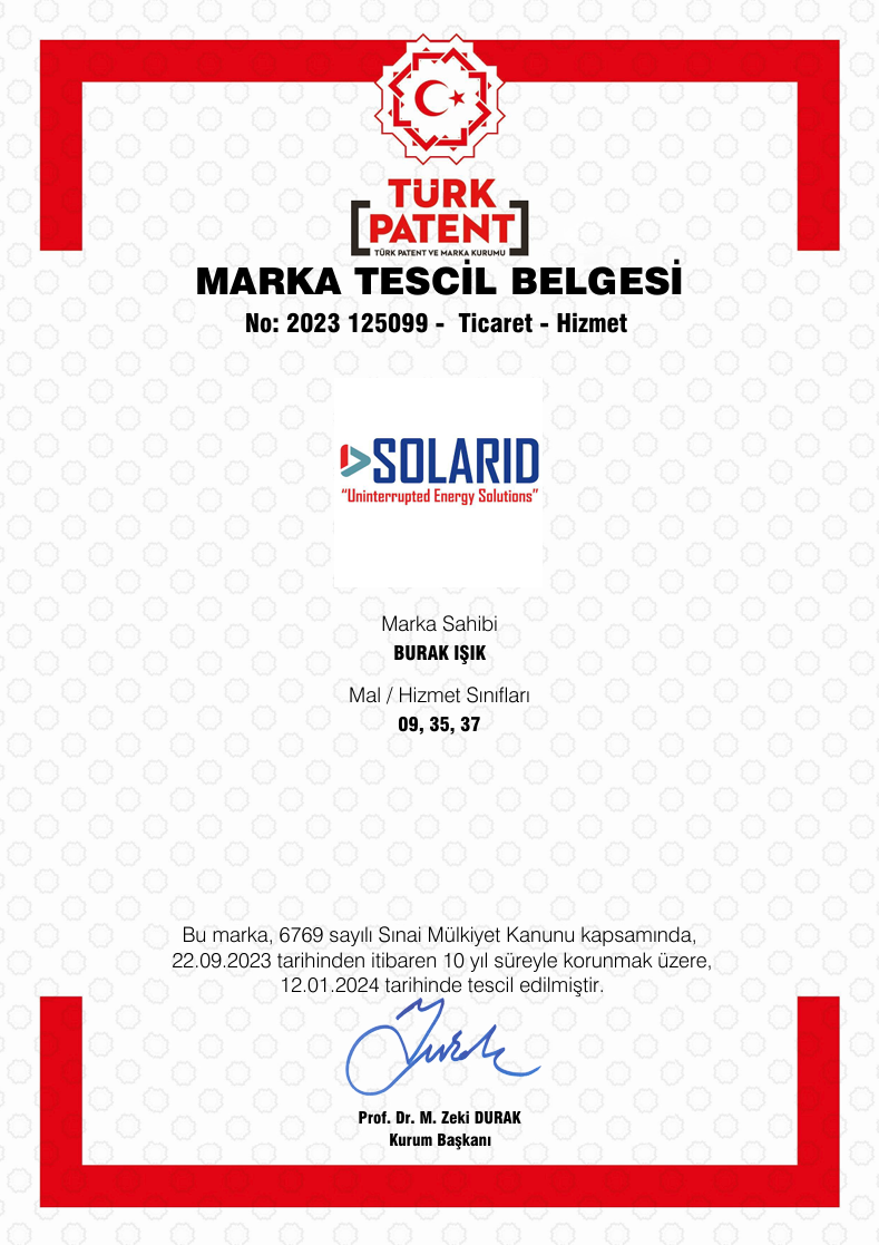 Marka Tescil Belgesi (SOLARID)