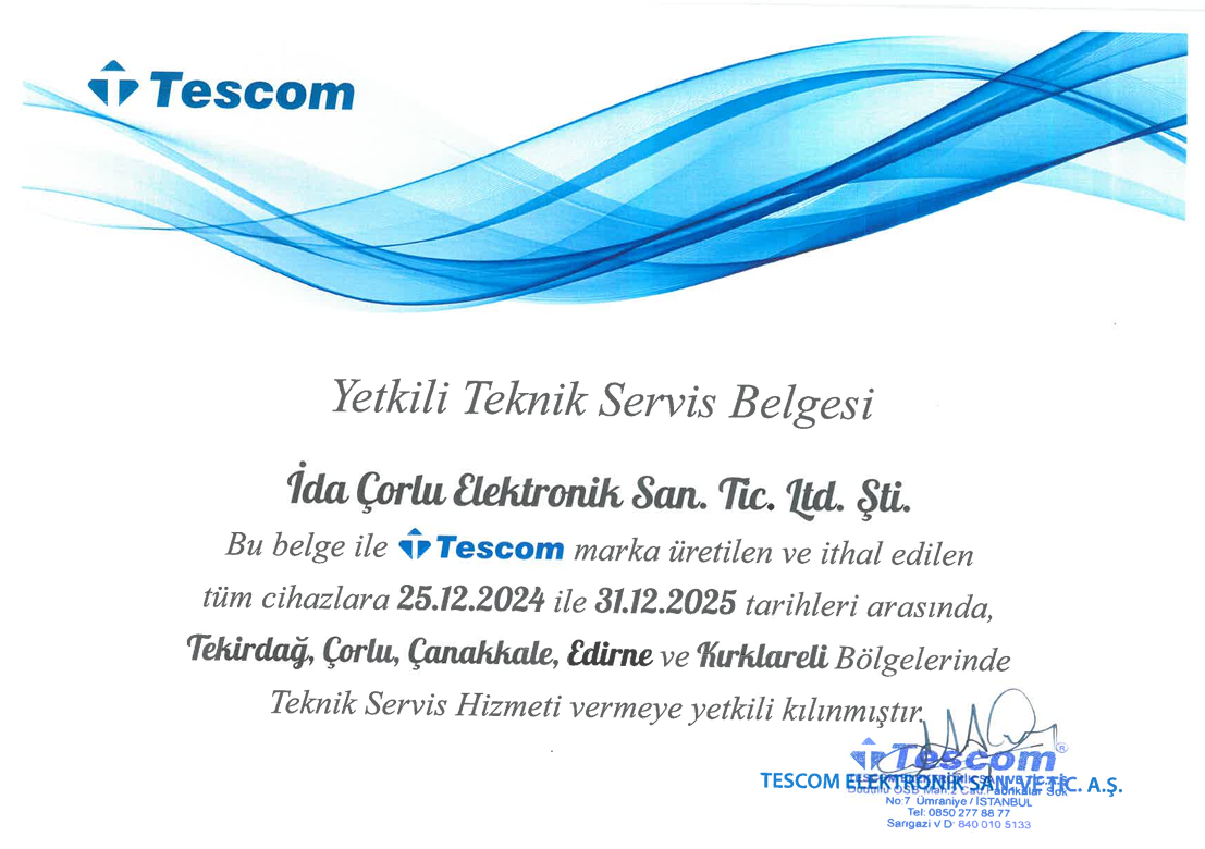 Tescom Yetkili Teknik Servis Belgesi
